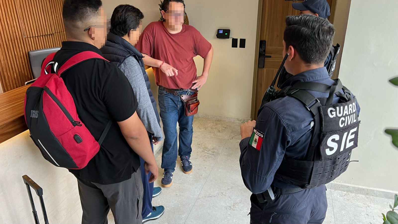 Mediante técnicas de investigación, análisis e inteligencia, el personal operativo logró localizar a tres personas al interior de un hotel ubicado en la colonia Centro.