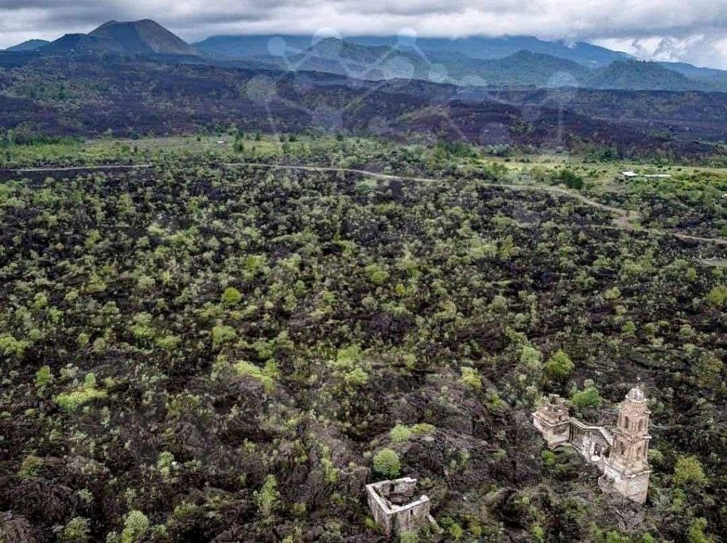 Mientras que, en su entorno, un gran mar de piedras incandescentes devoraba todo a su paso, lo sepultaba y lo atrapaba, es así como aquel poblado de Parangaricutiro, conocido también como San Juan de las Colchas y su iglesia, dedicada al Señor de los Milagros, fue prácticamente sepultada bajo toneladas de piedras; todos tuvieron que emigrar.