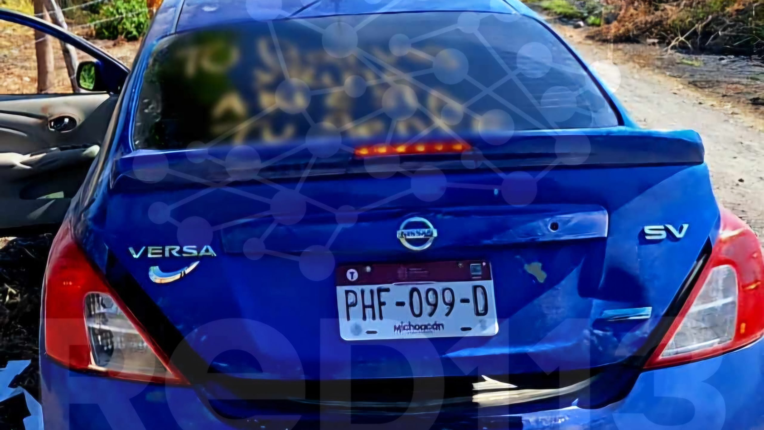 Algunas personas detectaron un auto Nissan Versa de color azul, sobre una brecha cercana a la carretera Apatzingán – Cuatro Caminos, al acercarse observaron 2 cadáveres ensangrentados en los asientos traseros, por lo que alarmados dieron aviso a las autoridades locales.