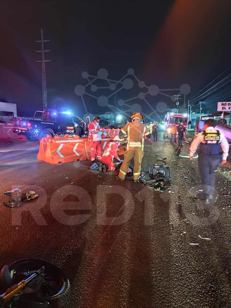 Morelia, Michoacán, 21 de octubre de 2025.- Cuatro personas resultaron lastimadas tras un accidente de tránsito en el que estuvieron involucrados una motocicleta y un automóvil. El percance ocurrió sobre el Periférico Paseo de la República, Sector Independencia, ubicado en la ciudad de Morelia, informaron fuentes de rescate, las cuales agregaron que el auto terminó volcado.