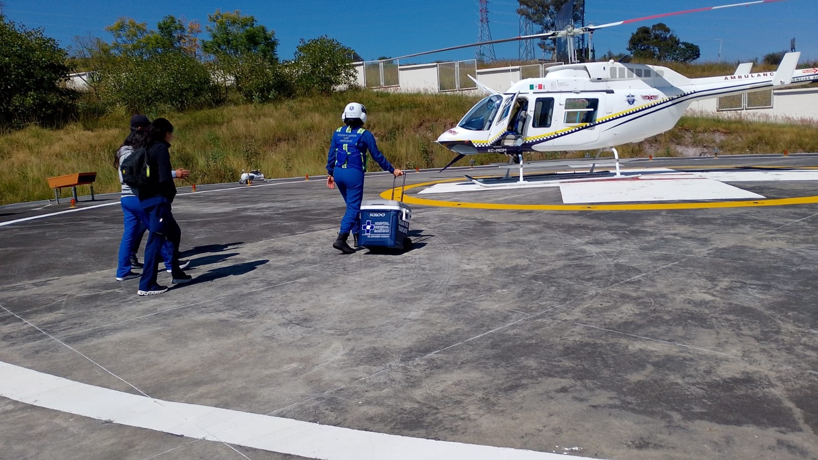 La tripulación aeromédica realizó el abordaje del órgano y del personal médico en el helipuerto del Hospital de Alta Especialidad del Instituto de Seguridad y Servicios Sociales de los Trabajadores del Estado (ISSSTE), para ser llevado hacia el Centro Médico Dalinde.
