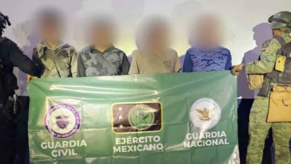 De manera coordinada, los agentes de la Guardia Civil, Ejército Mexicano y Guardia Nacional efectuaban acciones de disuasión del delito en la localidad de Chandio, sitio donde aseguraron a los implicados quienes se encontraban en posesión de un fusil calibre 7.62X39, un lanzagranadas, tres granadas, 90 cartuchos útiles y tres cargadores.