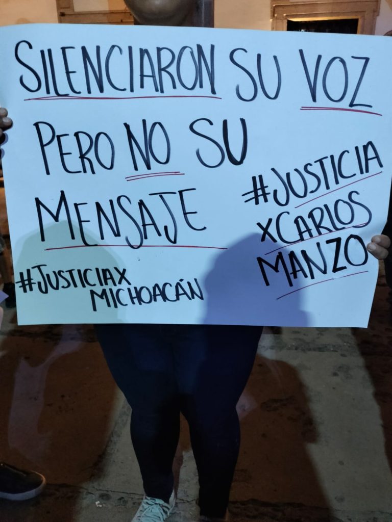 La manifestación también rindió homenaje a Carlos Manzo, ex presidente municipal, asesinado el 1 de noviembre durante el festival de velas en Uruapan, donde aún no se ha identificado al joven de entre 15 y 17 años fallecido y señalado como el autor del crimen.