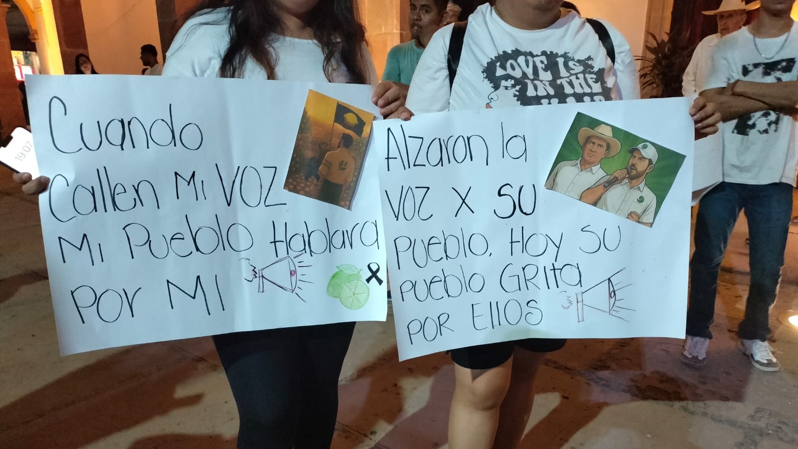 Además de las cartulinas que expresaban su solidaridad y descontento ante estos trágicos sucesos, muchos de los asistentes vestían camisas blancas, algunas de las cuales llevaban impresos los rostros de Bravo y Manzo.