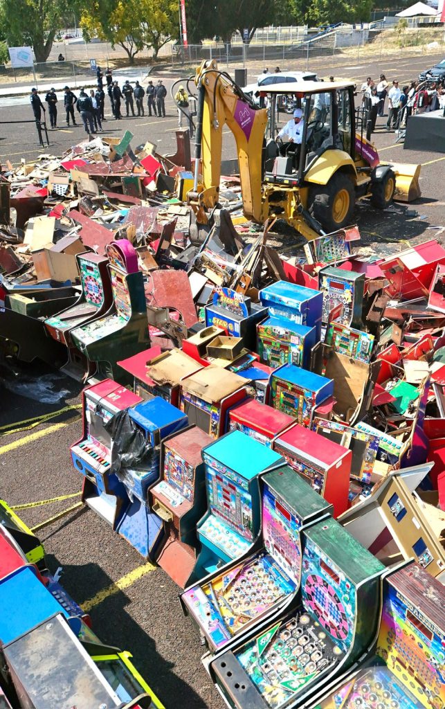 El mandatario informó que este día se destruyeron 700 de un total de 2 mil 500 máquinas tragamonedas decomisadas en coordinación con la Fiscalía General del Estado, Secretaría de Defensa Nacional, y las Guardias Nacional y Civil.