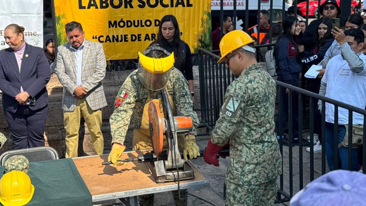 Como parte central de la feria, se instaló el Módulo de Desarme Voluntario, donde se recibió y destruyó un arma larga. El programa ofrece incentivos económicos a quienes entregan armas de manera anónima, con montos que van desde 680 a mil 220 pesos para armas hechizas, de 5 mil 605 a 22 mil 940 pesos para armas cortas según calibre, y hasta 32 mil 960 pesos para fusiles automáticos exclusivos del Ejército.