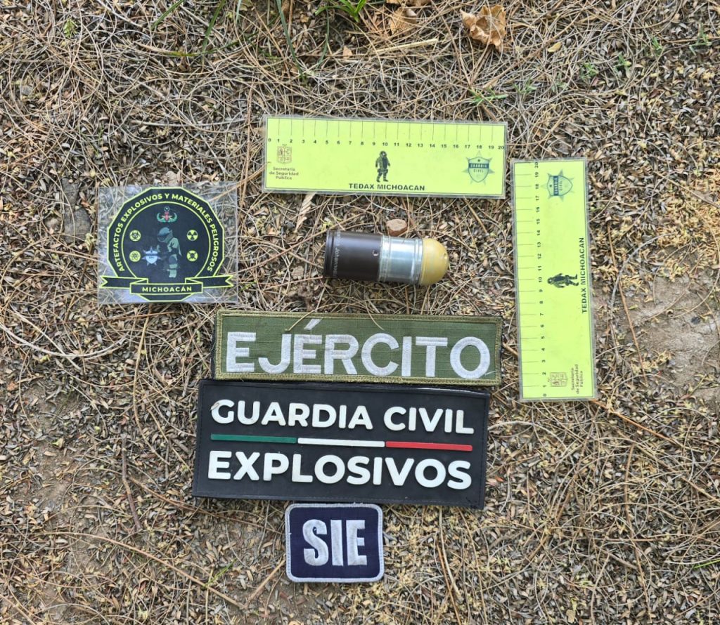 Apatzingán, Michoacán, 29 abril de 2025.- Resultado del reforzamiento operativo que se mantiene en Tierra Caliente, los elementos de las secretarías de Seguridad Pública (SSP) y de la Defensa Nacional (Defensa), aseguraron tres armas de fuego y un artefacto explosivo improvisado.