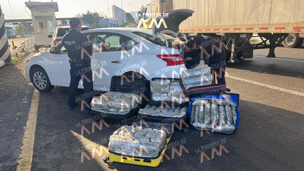 Maravatío, Michoacán, 14 de abril de 2026.- Personal de la Secretaría de Seguridad Pública (SSP) detuvo a una mujer que transportaba cinco maletas con aproximadamente 65.3 kg de hierba verde seca con las características propias de la mariguana. El aseguramiento ocurrió durante labores de prevención y vigilancia sobre la Autopista de Occidente.