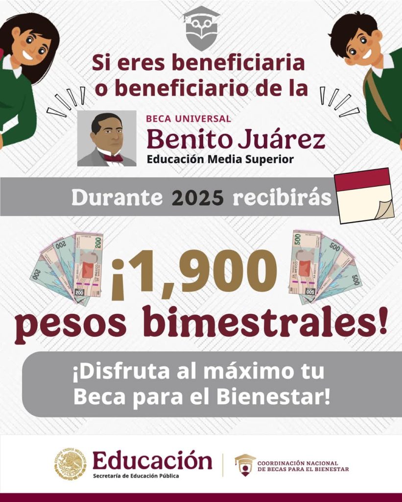 Morelia, Michoacán de Ocampo, 05 de febrero de 2025.- Del 05 al 28 de febrero, el Gobierno de México, a través de la Coordinación Nacional de Becas para el Bienestar, abrió el registro a la Beca Universal de Educación Media Superior “Benito Juárez” para todas y todos los estudiantes de nuevo ingreso inscritos en preparatorias y bachilleratos públicos de Michoacán.