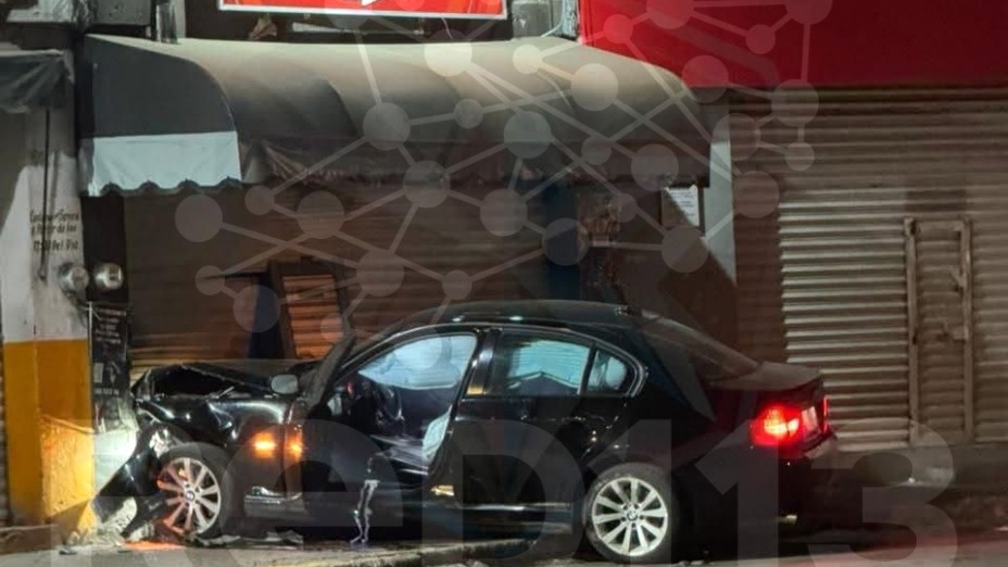 La Piedad, Michoacán, 6 de diciembre de 2025.- Un fuerte estruendo despertó a los vecinos del bulevar Adolfo López Mateos de La Piedad minutos antes del amanecer de este sábado, luego de que un vehículo BMW 323, terminara estrellado contra la fachada del negocio “King Pollo”.