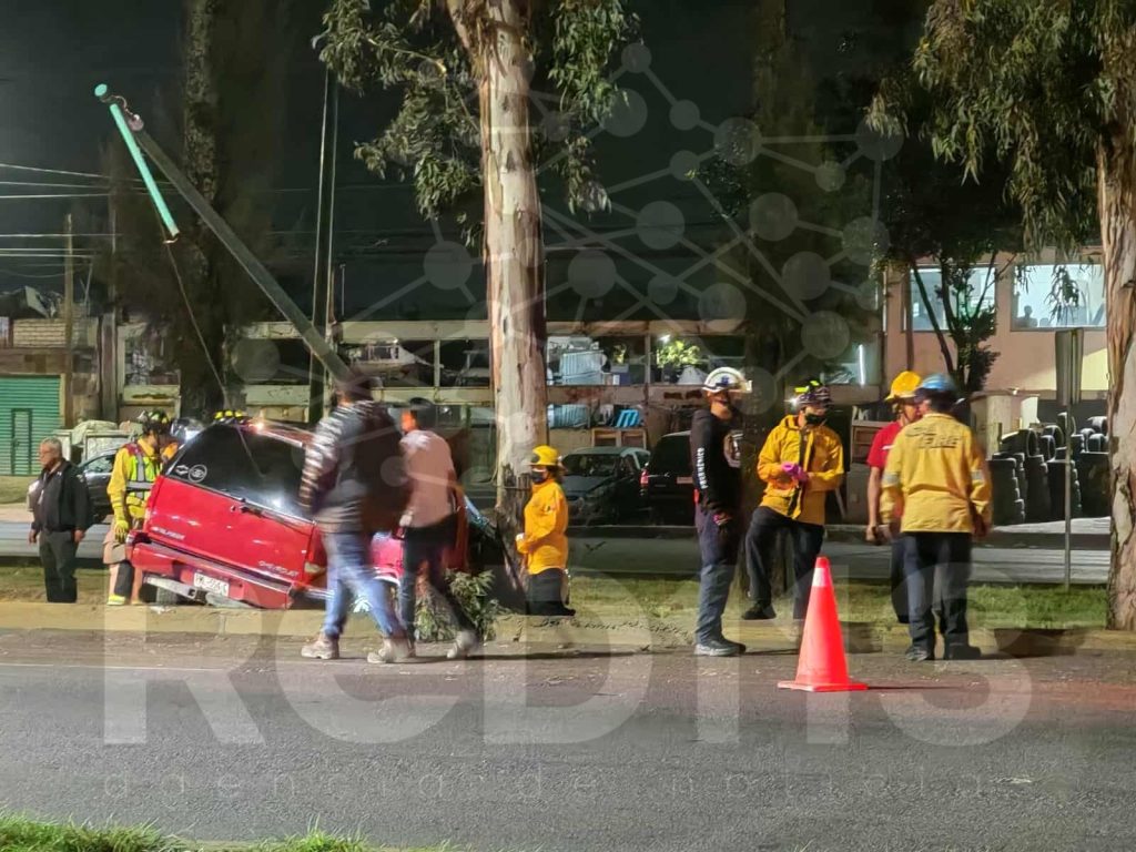 Morelia, Mich.- Domingo 24 de agosto de 2025.- Tres ocupantes de una camioneta resultaron malheridos tras el choque de la citada unidad contra un poste metálico y un árbol ubicados en camellón central del Libramiento Norte de Morelia, informaron fuentes de rescate.