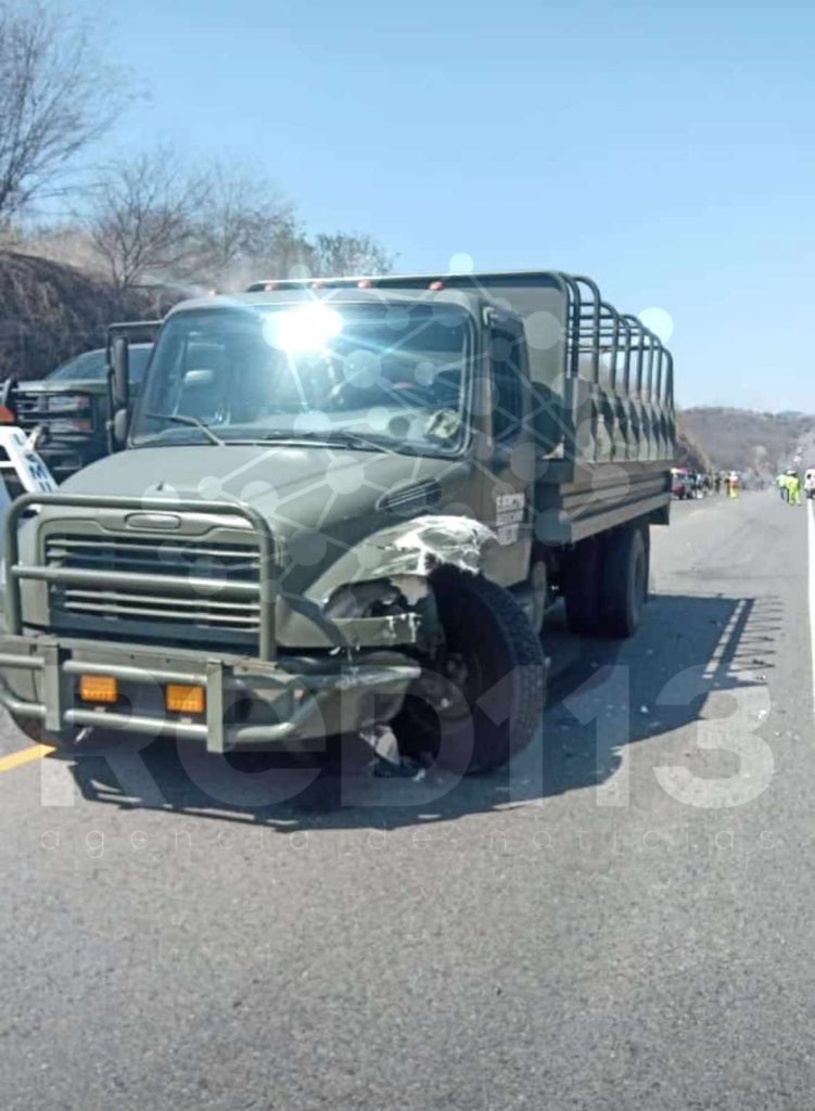 El aparatoso accidente se registró a la altura del kilómetro 279, a unos kilómetros de la caseta de cobro de Feliciano, donde colisionaron una camioneta Sprinter y un camión tipo Mercedes del Ejército Mexicano.