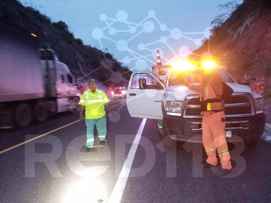 Primeramente, en el kilómetro 239+800, un camión pipa de PEMEX, se salió de la carpeta asfáltica y acabó volcado en la cuneta pluvial, sin que se registrara derrame y se estableció paso alterno.