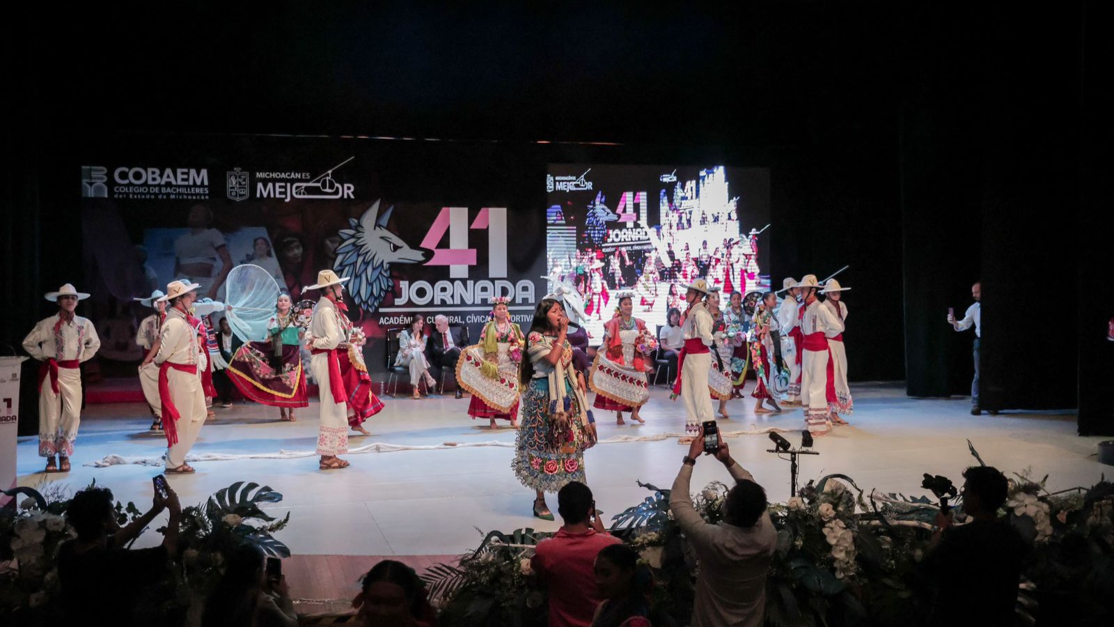 Bajo los lemas “Aguas con el agua”, “Somos Coabem” y “Somos bachis por el agua”, los estudiantes de los planteles Los Reyes, Ario de Rosales y Ocumicho presentaron un espectáculo artístico, como un llamado para valorar, cuidar y hacer un uso responsable del agua.