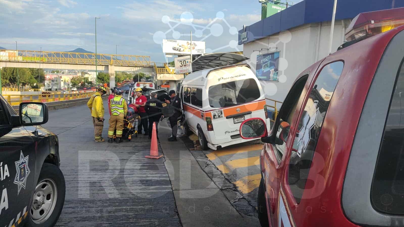 Combi choca contra banqueta en el Libramiento Oriente de Morelia