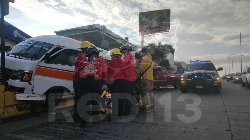Morelia, Michoacán, 03 de agosto de 2025.- Un trabajador del volante aparentemente ebrio quedó lesionado tras el choque de su combi contra una banqueta ubicada a la orilla del Libramiento Oriente de Morelia, informaron autoridades policiales y de rescate.