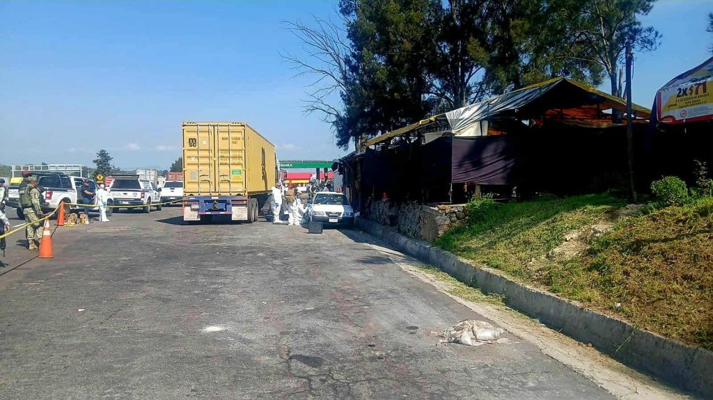 Los disparos fueron alertados a número de emergencias, luego acudieron patrulleros locales y elementos de la Guardia Nacional (GN), quienes con apoyo de paramédicos confirmaron los decesos de los afectados, uno de ellos, la fémina yacía dentro de un automotor Nissan Tsuru, color blanco, con placa PAZ828B. Otros dos cuerpos estaban tirados al exterior de un tráiler y el restante en un comercio de comida.