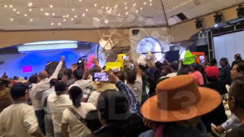 El grupo de choque integrado por decenas de hombres y mujeres presuntamente arribaron en dos autobuses que se estacionaron en las inmediaciones de el hotel Posada del Sol, descendieron e ingresaron al salón “La Conquista”, justo cuando Morón Orozco concluía su mensaje sobre la próxima elección de jueces y magistrados.