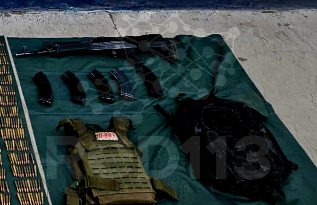 Asimismo, durante las tareas operativas, los efectivos aseguraron un arma larga calibre 7.62X39, 88 cartuchos calibre 50 milímetros, 1,610 cartuchos calibre 7.62X39, equipo táctico, y una motocicleta Italika Forza de color gris, sin placas de circulación.