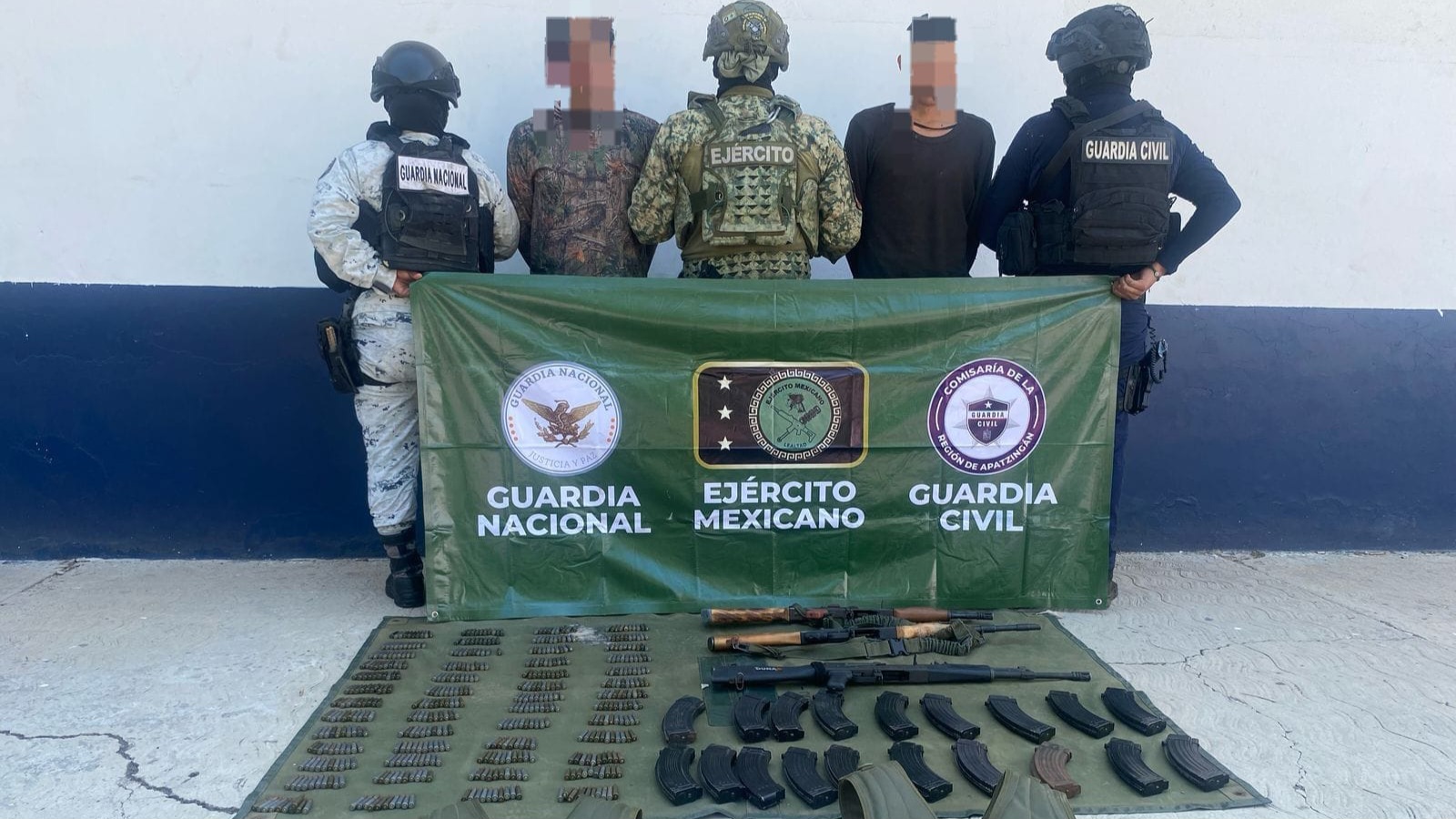 Durante el despliegue de trabajos operativos en la localidad de Puerta Chica de esta demarcación, los efectivos de la Guardia Civil, el Ejército Mexicano y la Guardia Nacional, aseguraron en una zona serrana a los hombres mencionados.