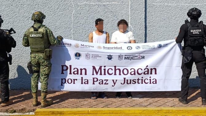Apatzingán, Michoacán, a 7 de enero del 2026 Como parte de la acciones operativas del Plan Michoacán por la Paz y la Justicia, elementos de la Secretaría de Seguridad Pública (SSP), lograron la detención de dos objetivos prioritarios en el municipio de Apatzingán, quienes están presuntamente relacionados al delito de extorsión en contra de limoneros de la región.