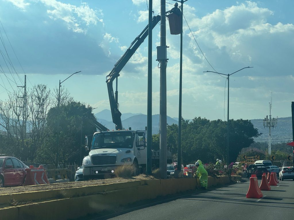 Morelia, Michoacán, 5 de Marzo de 2025.- La construcción del distribuidor vial de la salida a Pátzcuaro ha generado la necesidad del retiro de alumbrado, postes de diversos servicios y árboles, tanto en la avenida La Huerta como en el libramiento de Morelia.