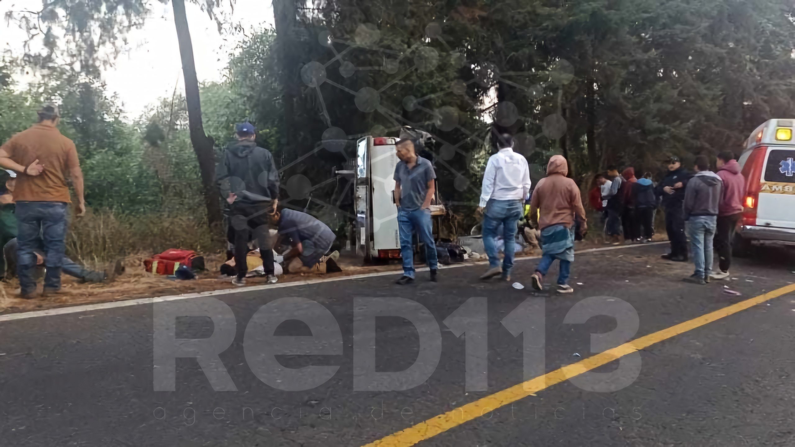 Peribán, Michoacán, 21 de marzo de 2025.- Doce integrantes de una cuadrilla de cortadores de aguacate de la ciudad de Los Reyes resultaron lesionados, cuatro de ellos de consideración, luego de que el chófer de la camioneta en la que viajaban a trabajar a una huerta del municipio de Peribán, chocó contra un camión de carga cuando intentaba rebasarlo, quedando la unidad volcada y los jóvenes regados en el suelo.