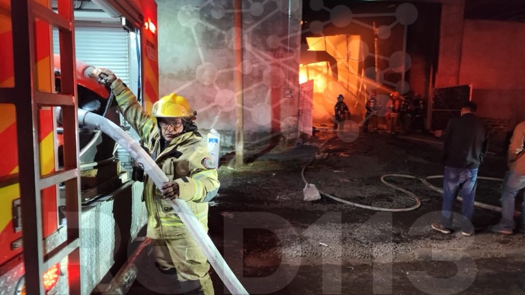 Chavinda, Michoacán, 26 de diciembre de 2025.- La noche del pasado jueves se reportó un incendio de grandes magnitudes en una fábrica de plásticos ubicada en la calle Francisco I., Madero de la cabecera municipal de Chavinda.