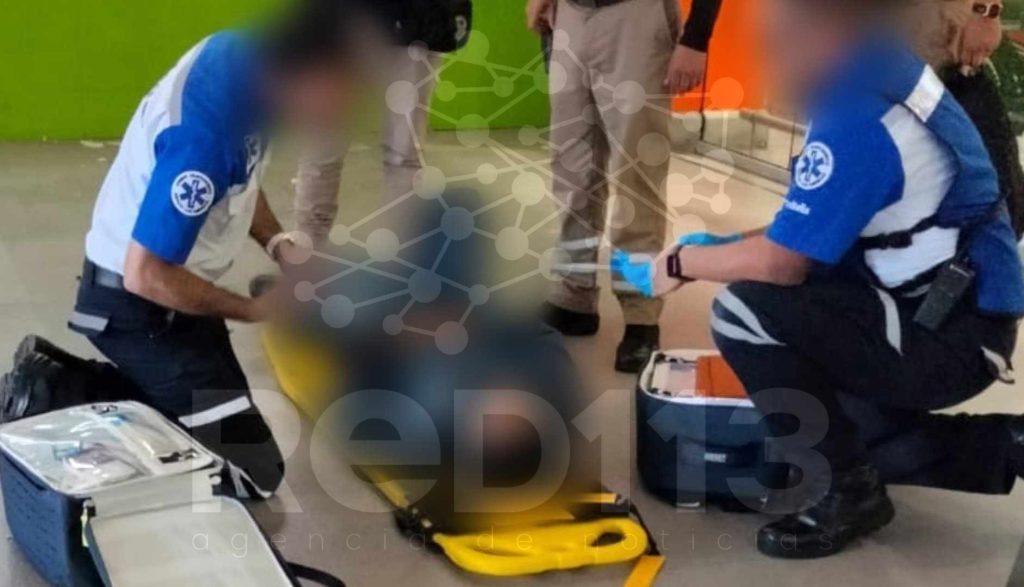 Morelia, Michoacán, 07 de abril de 2025.- Un hombre, empleado de mantenimiento, realizaba su actividad cotidiana y resultó lesionado tras caer de la parte alta de La Comer Escala Morelia, informaron fuentes policiales y de rescate.