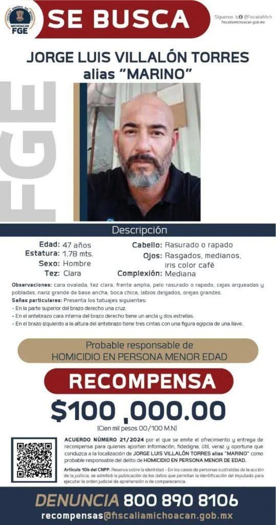 Tras haber obtenido el mandato judicial, se emitió un acuerdo de recompensa, solicitando a la ciudadanía proporcionar información que ayudara en la ubicación del presunto responsable.