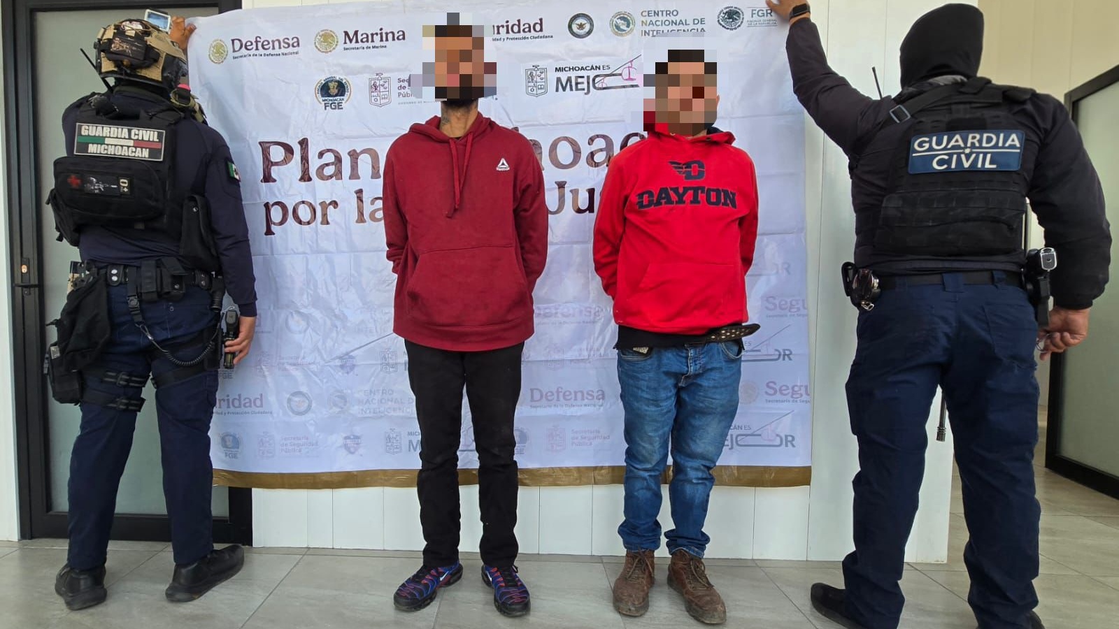 Morelia, Michoacán, 12 de enero de 2026.- Como parte de las labores del Plan Paricutín, agentes de las secretarías de Seguridad Pública (SSP) y de la Defensa Nacional (Defensa), en coordinación con la Fiscalía General del Estado (FGE), detuvieron a tres personas y aseguraron cinco armas de fuego en cinco operativos distintos.