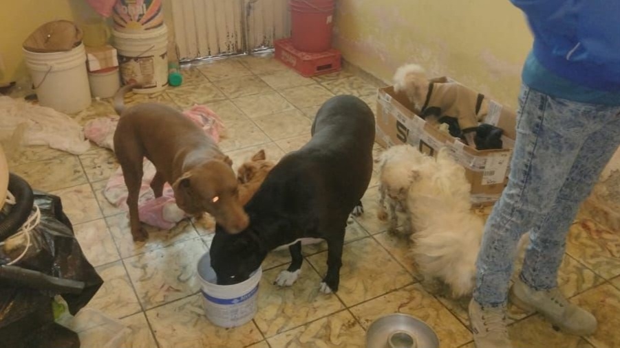 Con el mandamiento judicial, agentes de la Policía de Investigación se trasladaron al inmueble ubicado en la calle Colegio Juárez Leyes de La Reforma, donde aseguraron a los 29 perros, de diversas razas y tamaños, los cuales, tras ser evaluados por especialistas, se determinó que eran víctimas de maltrato, encontrándose en condiciones de abandono, desnutrición y deshidratación, lo que afectaba gravemente su desarrollo físico. Además, se halló un ejemplar más sin vida.
