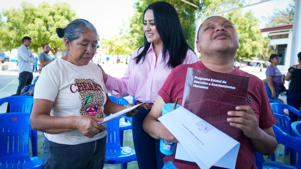 Esta entrega se realizó en el marco del Programa Estatal de Atención a Asentamientos Humanos, en su intervención, Butanda Macías agradeció a la Dirección de Gestión de Suelo de la Sedum por su compromiso y por asegurar que ningún municipio quede fuera del objetivo de brindar certeza en la tenencia de la tierra a quienes más lo necesitan.