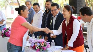 Acompañada por la presidenta municipal de Buenavista, Irma Moreno Mendoza, la secretaria celebró este avance significativo en favor de la seguridad jurídica de las y los vecinos, quienes llevaban más de 30 años habitando en situación irregular.