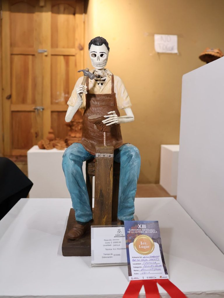 Morelia, Michoacán, 19 de octubre de 2025.- Con la entrega de 90 mil pesos en premios a las mejores 25 piezas artesanales, dio inicio la edición 15 de la Feria de la Catrina en Capula, donde la Casa de las Artesanías de Michoacán (Casart) reconoció el talento de quienes participaron en el 13 Concurso Artesanal de la Catrina de Barro.