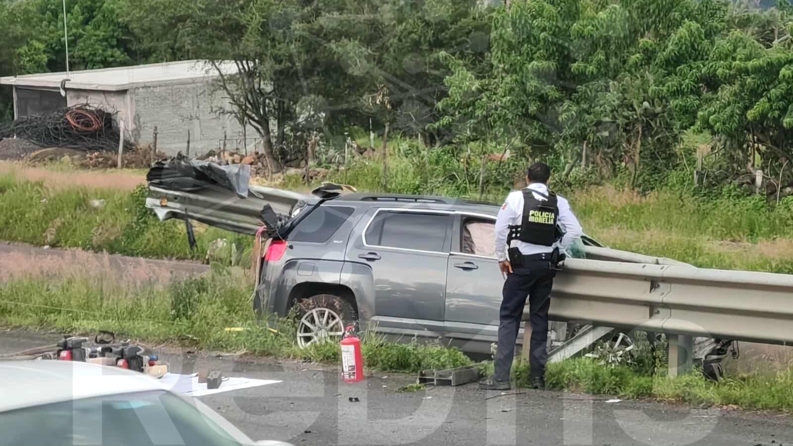 En el lugar se presentaron elementos de la Coordinación Estatal de Protección Civil Michoacán (CEPCM), así como unos paramédicos, quienes confirmaron el deceso del ocupante del mencionado vehículo, el cual es de la marca GMC Terrain, de color gris oscuro.