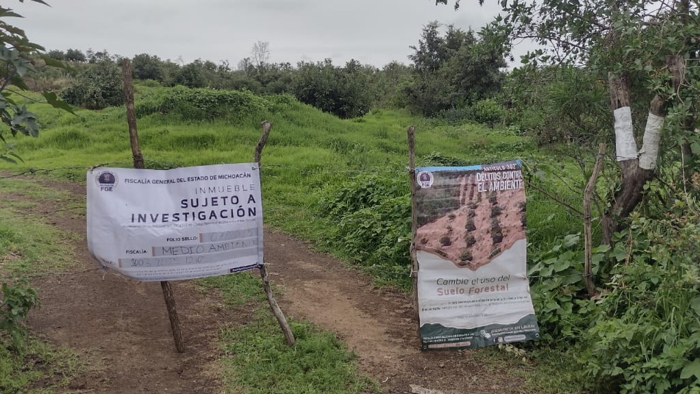 Durante la diligencia, personal de la Unidad de Investigación y Persecución de Delitos Contra el Medio Ambiente llevó a cabo una inspección del predio, donde se localizaron múltiples tocones de árboles recientemente derribados, así como plantaciones de aguacate que no contaban con los permisos legales correspondientes.
