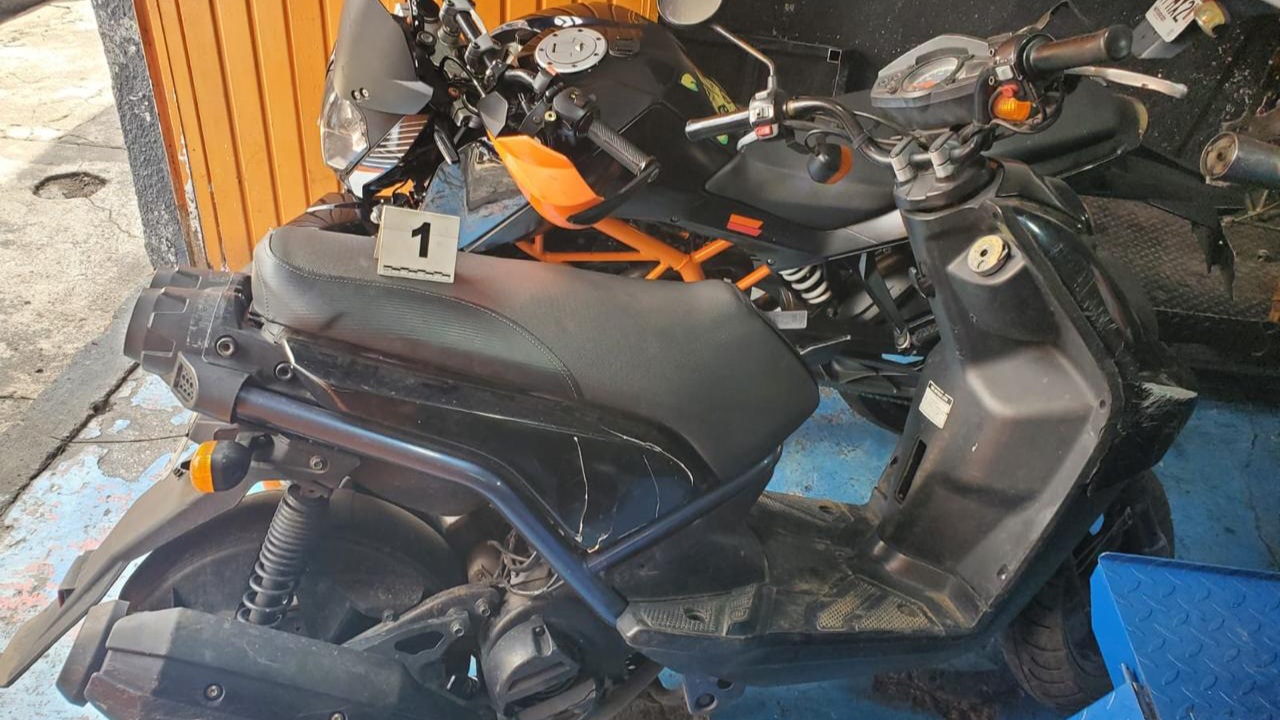 Durante la inspección al taller de motocicletas, fue localizada y asegurada una motocicleta marca Yamaha, tipo motoneta, color negro, que presentaba alteraciones en sus medios de identificación.