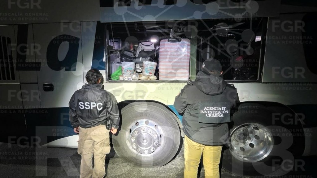 En un operativo conjunto del Gabinete de Seguridad del Gobierno de México, específicamente elementos de la Secretaría de Seguridad y Protección Ciudadana (SSPC) y de la Policía Federal Ministerial (PFM) de la Agencia de Investigación Criminal (AIC) de esta FGR, se pudo realizar una revisión a un autobús de pasajeros, con la ayuda de un binomio canino en la autopista México – Guadalajara, en las inmediaciones de la caseta de cobro de Contepec.