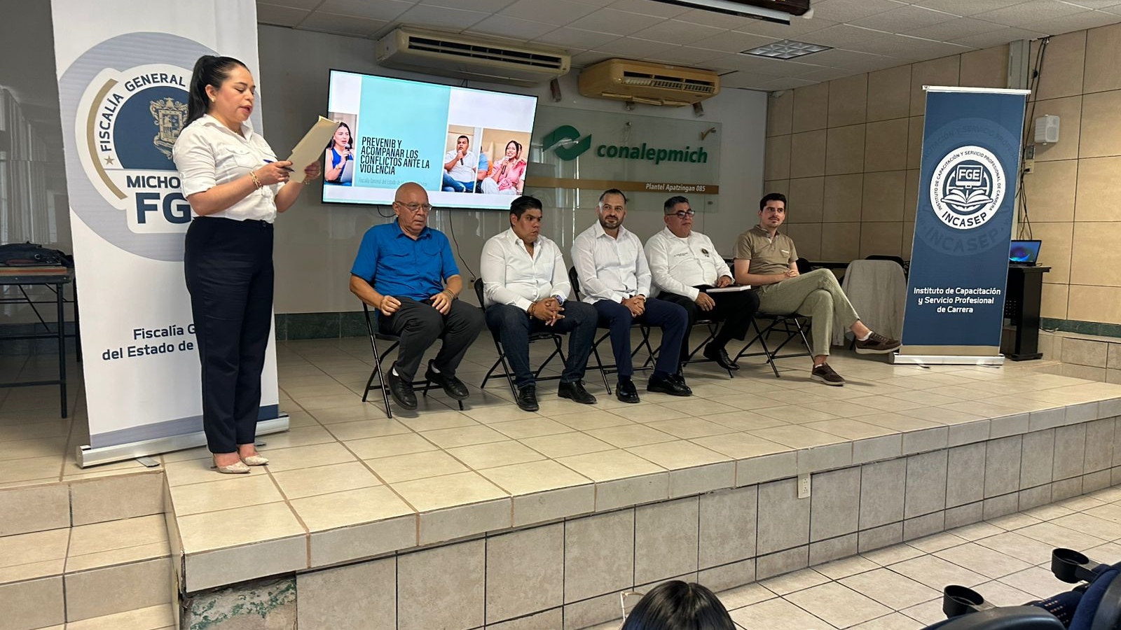 Apatzingán, Michoacán, a 17 de abril de 2026.- La Fiscalía General del Estado de Michoacán (FGE), a través del Instituto de Capacitación y Servicio Profesional de Carrera, llevó a la Fiscalía Regional de Apatzingán el curso “Prevenir y acompañar los conflictos ante la violencia”, en el que participaron 30 personas servidoras públicas.