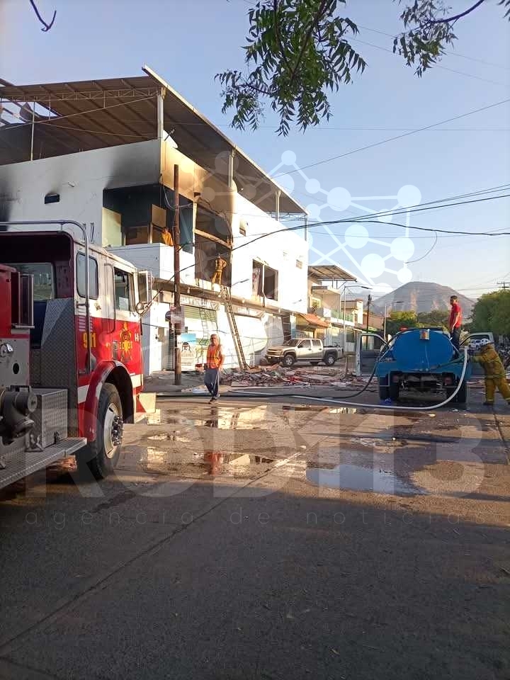 y corporaciones municipales atienden un incendio que de acuerdo a los primeros indicios, al parecer derivó de la explosión de un tanque de gas al interior de un negocio”.