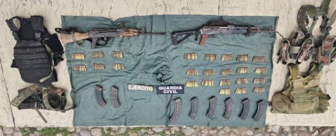 En el lugar, fueron detenidos dos hombres en posesión de dos armas largas, 241 cartuchos útiles, ocho cargadores y una camioneta marca Dodge con reporte de robo.