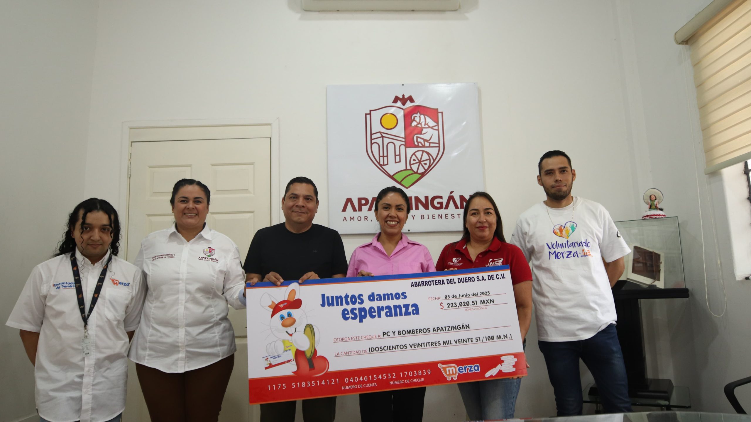 Apatzingán, Michoacán; 08 de junio de 2025.- El Ayuntamiento de Apatzingán recibió un importante donativo por parte de Fundación Merza, resultado de la generosidad de los clientes que participaron en la campaña de redondeo en tiendas del grupo. Este recurso será destinado al fortalecimiento de Protección Civil y Bomberos, corporación que atiende emergencias de forma permanente en el municipio.