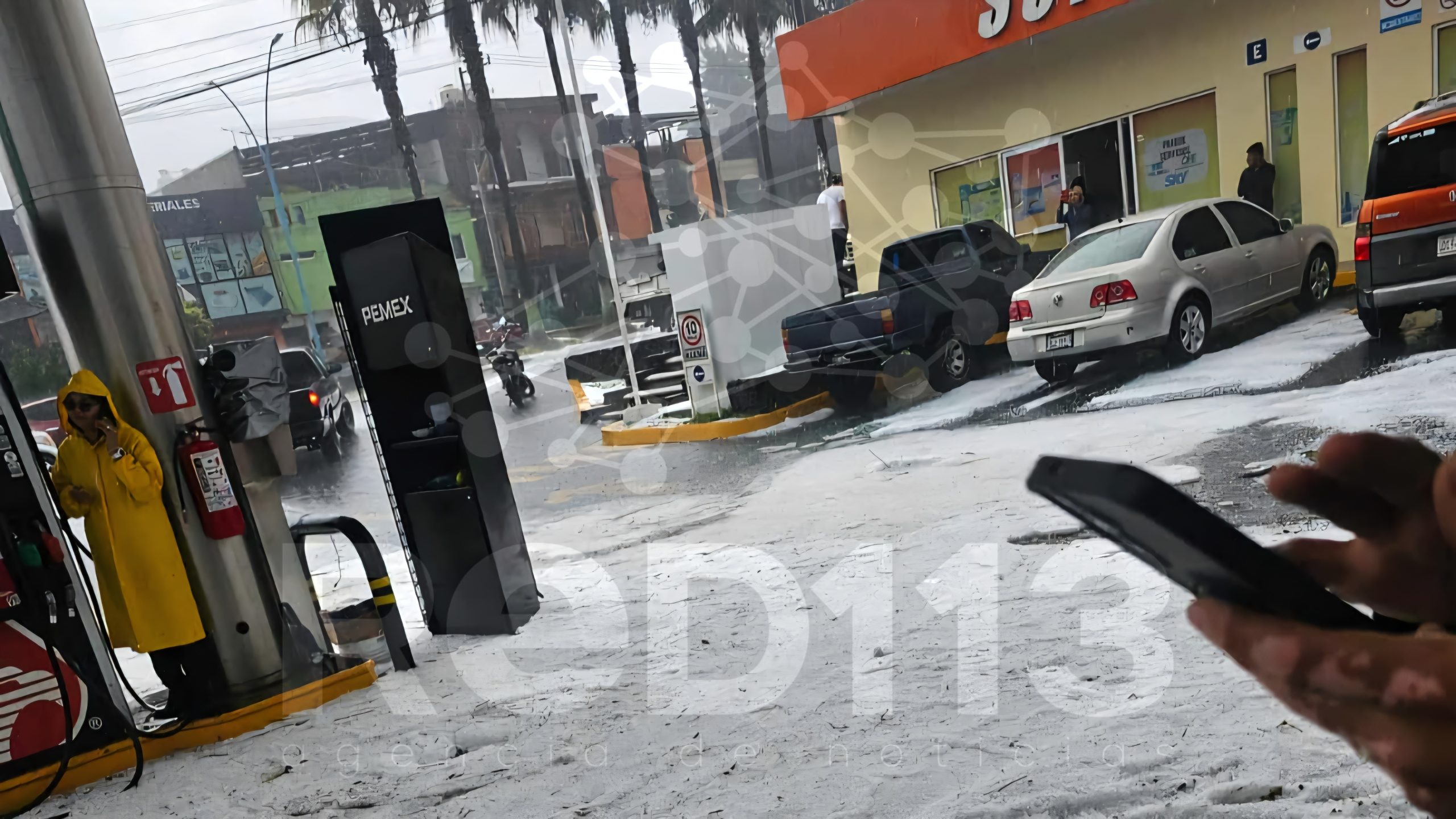 Las imágenes difundidas por habitantes muestran escenas que podrían confundirse con un paisaje invernal: patios residenciales cubiertos de hielo, calles del centro con tránsito reducido y gasolineras con el piso completamente blanco.