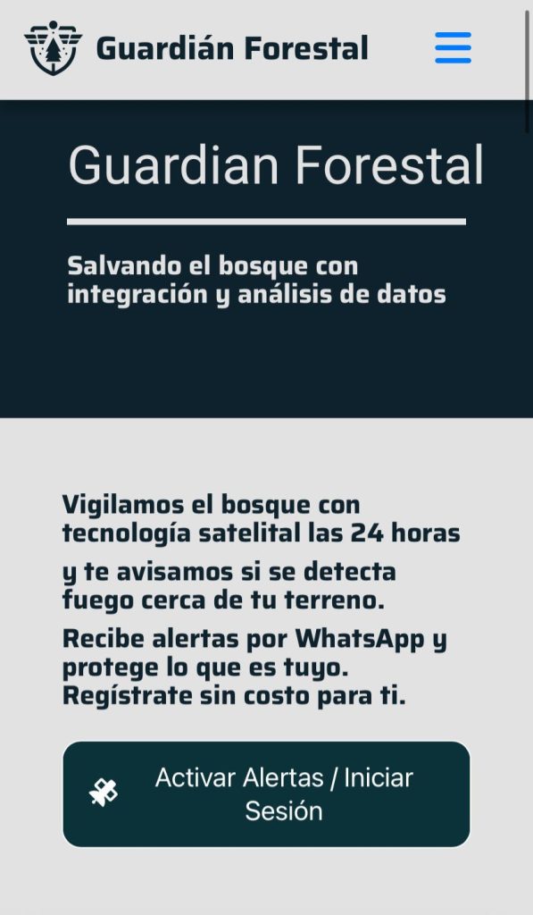 Para registrarte solo es necesario entrar al sitio web www.guardianforestal.com e ingresar nombre, correo electrónico y número telefónico para crear una cuenta. Se deberá trazar en el mapa el polígono de la propiedad o zona de interés para darlas de alta, activar la alarma y listo. Recibirás un mensaje de confirmación vía WhatsApp, minutos después de tu registro.