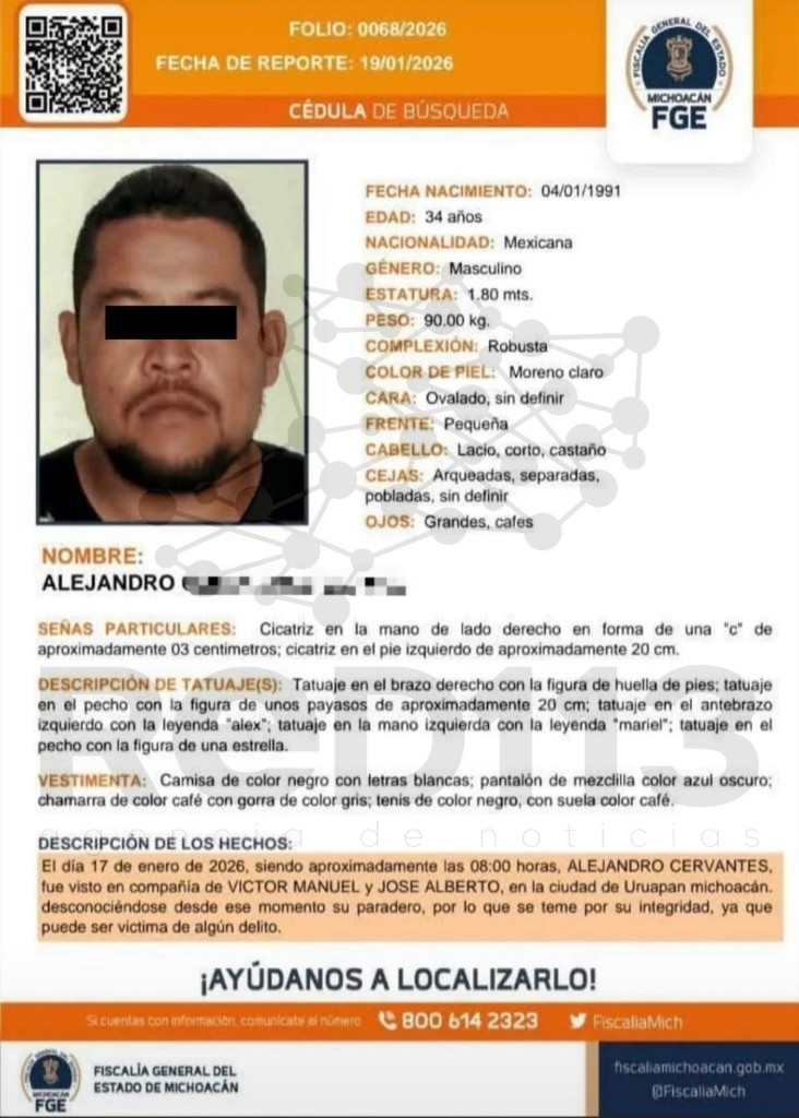 Uruapan, Michoacán, 22 de enero de 2026.- En el vecino estado de Guanajuato fueron localizados asesinados tres uruapenses reportados como desaparecidos desde el pasado 17 de enero; el paradero de otro hombre que los acompañaba es ignorado hasta el momento.
