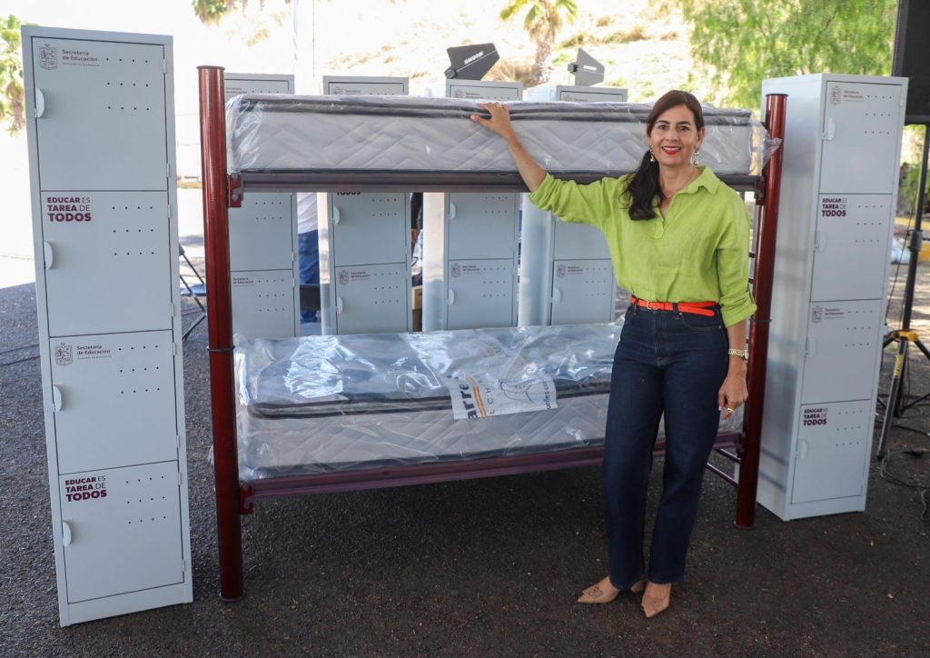 Durante el evento de entrega de mobiliario, que se realizó este jueves, la secretaria destacó inversión de 6 millones de pesos para la dotación de más de 600 lockers, literas, colchones de alta gama y materiales didácticos. Además, informó que en varios de estos espacios llevan a cabo obras de mejoramiento, rehabilitación de infraestructura, reparación y remodelación para garantizar condiciones dignas y seguras para las y los estudiantes.