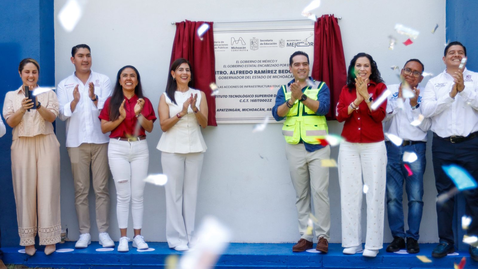 Zarazúa Sánchez, acompañado de la secretaria de Educación en el Estado, Gaby Molina, así como la directora del Instituto de Educación Media Superior y Superior, Mariana Sosa, inauguraron la barda perimetral del Instituto Tecnológico Superior de Apatzingán, donde se invirtieron 16 millones de pesos.
