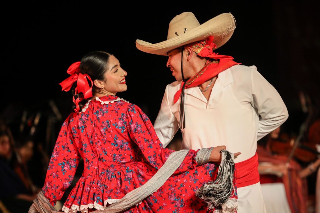 Al ritmo de Orquesta Sinfónica Vasco de Quiroga, los portadores de tradiciones lucieron sus trajes típicos elaborados con técnicas que representan a las diversas regiones del estado y que muestran la riqueza ancestral de Michoacán, y que al paso de los siglos, se preservan gracias a la transferencia de costumbres de generación en generación.