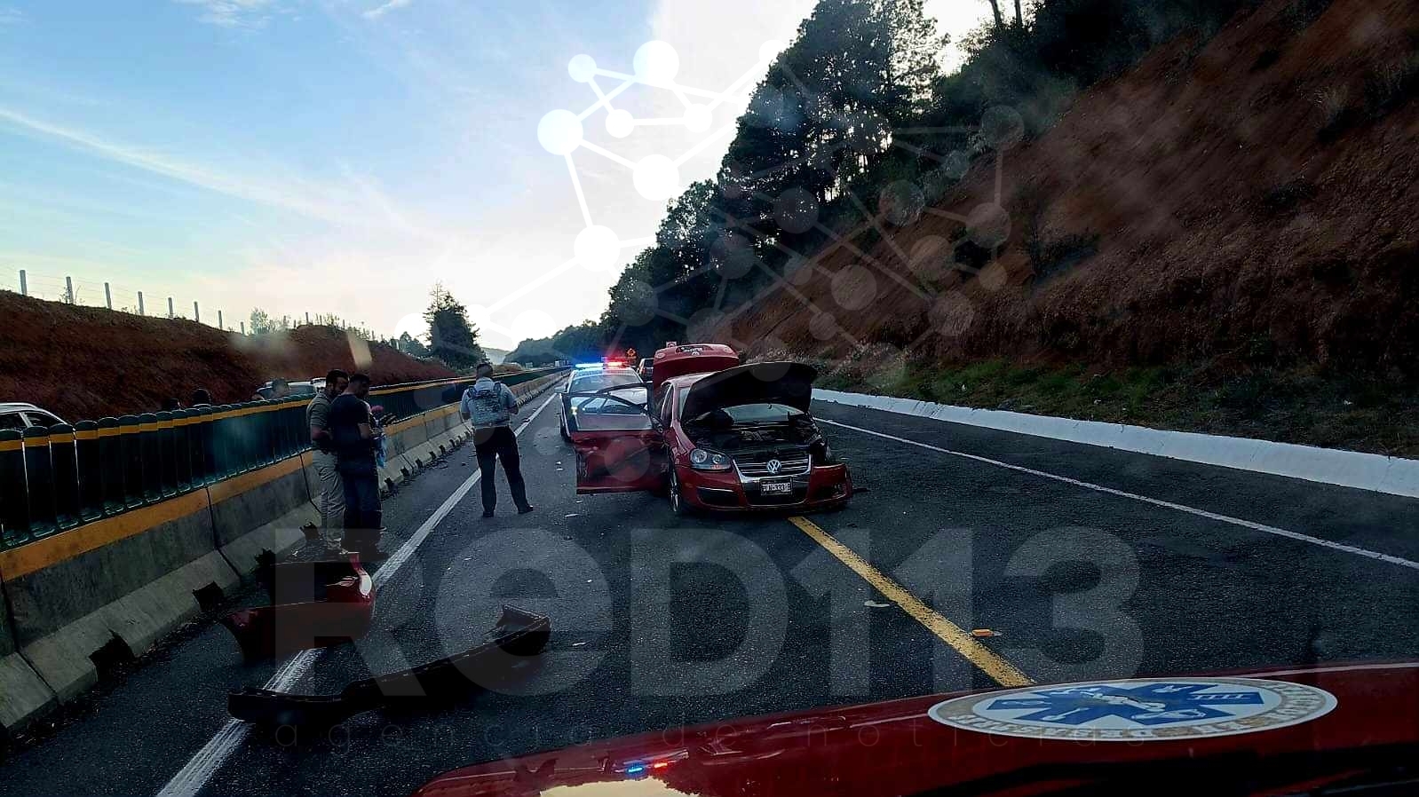 El personal de auxilio vial apoyó en la limpieza de la carreta debido a que quedaron regados pedazos del Jetta, mientras que los oficiales la Guardia Nacional División Seguridad en Carreteras e Instalaciones se encargaron de los peritajes.